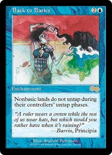 曾经经历过过山车牌价的明星单卡,专门惩罚法术力结构贪婪的套牌。 卡图 卡牌信息链接 Back to Basics 反璞归真 主备分类 主牌 颜色 蓝色 首次出现 周六, 01/19/2008 - 12:00